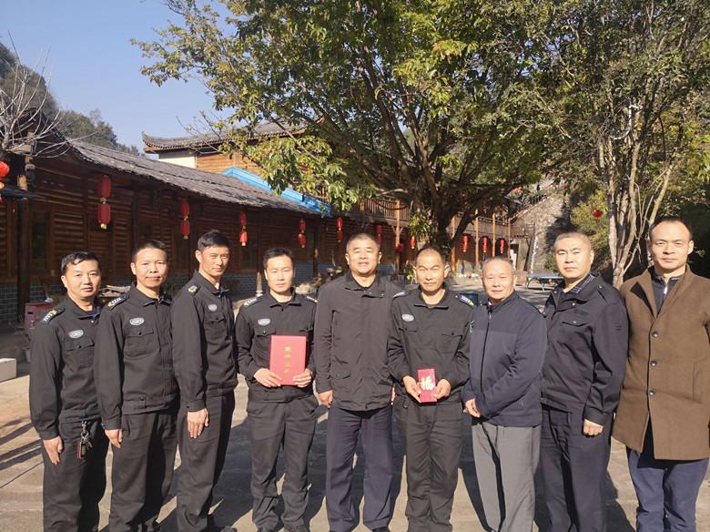 公司領(lǐng)導(dǎo)對被評為省保安先進(jìn)隊(duì)員吳小東進(jìn)行頒獎,并鼓勵他再接再厲,發(fā)揮先進(jìn)模范帶頭作用。